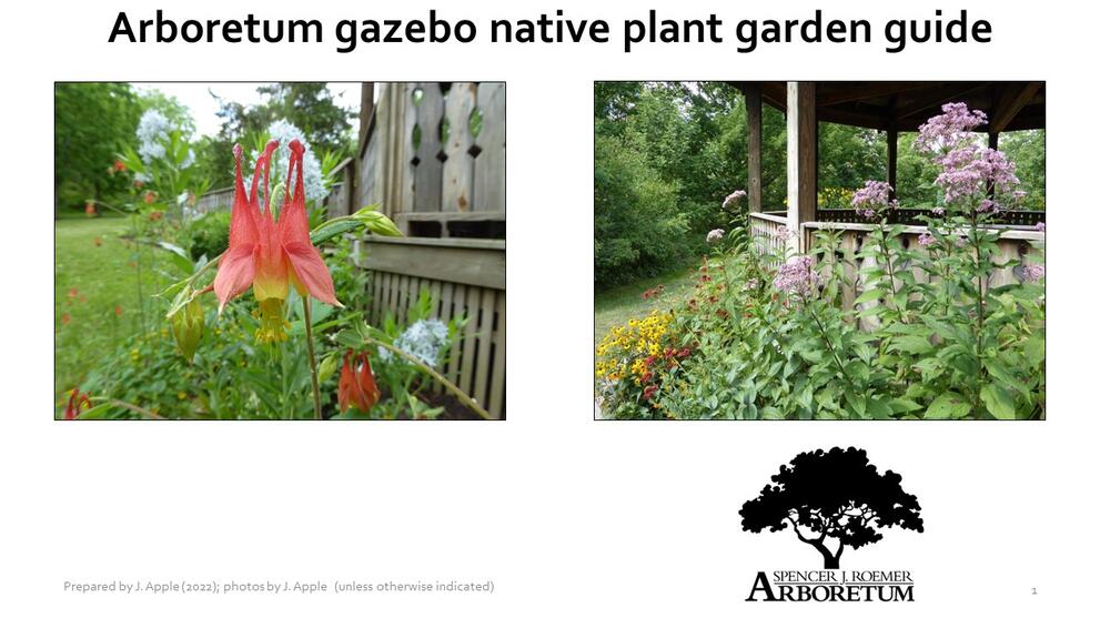 The purpose of the native plant gardens of the Spencer J. Roemer Arboretum is to improve this site’s value for native pollinators like bees, butterflies, and other insects – as well as for showing off the beauty of native plants. Native pollinators have suffered population declines because of habitat loss and fragmentation, habitat degradation through the spread of invasive species, and pesticide use. Three-quarters of flowering plants require animal pollinators to some degree to reproduce, and animal pollinators aid in production of 35% of the world’s crops. The entrance and gazebo gardens serve as a showcase for native plants that are both aesthetically pleasing and valuable to insect visitors.