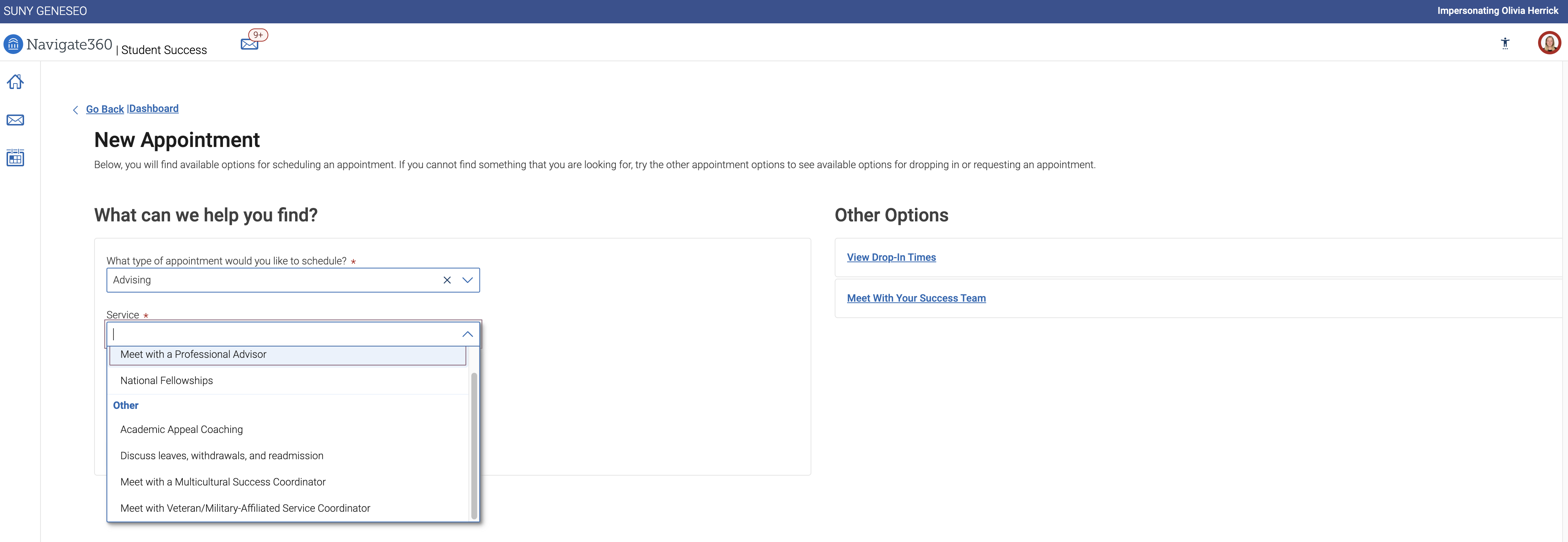 ** If that person is in the Office of Advising, you can click on their link on the Office of Advising Staff Contact page for a quick link to their Navigate availability.
