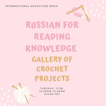 Join Professor Cynthia Klima as she presents her Russian for Reading student's Cross Stitch projects at an open gallery.