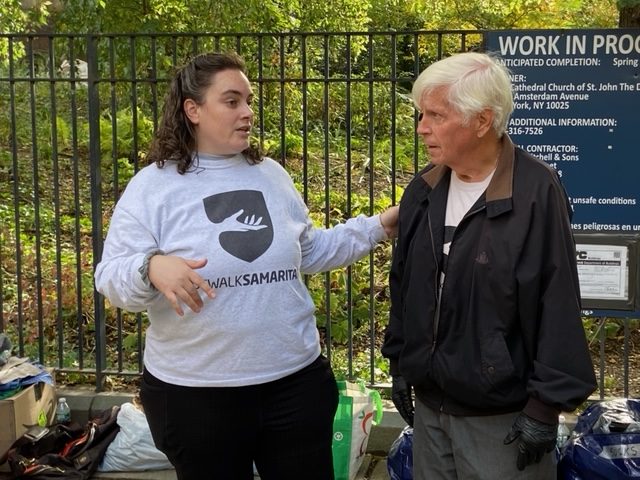 Personally, I’ve come full circle in my career. I am a caseworker for patients of the neurology department for epilepsy and multiple sclerosis at Columbia University Irving Medical Center, where I had my implant surgery and only steps away from the subway station where I met Mark and started my pay-it-forward journey. Five days a week, I am the patients’ advocate, assisting them in meeting with doctors, navigating insurance and housing and other challenges of their care. Two or more days a week, I am a Sidewalk Samaritan hoping that new socks will keep infection away and sleeping bags or McDonald’s gift cards will help someone get through another night.