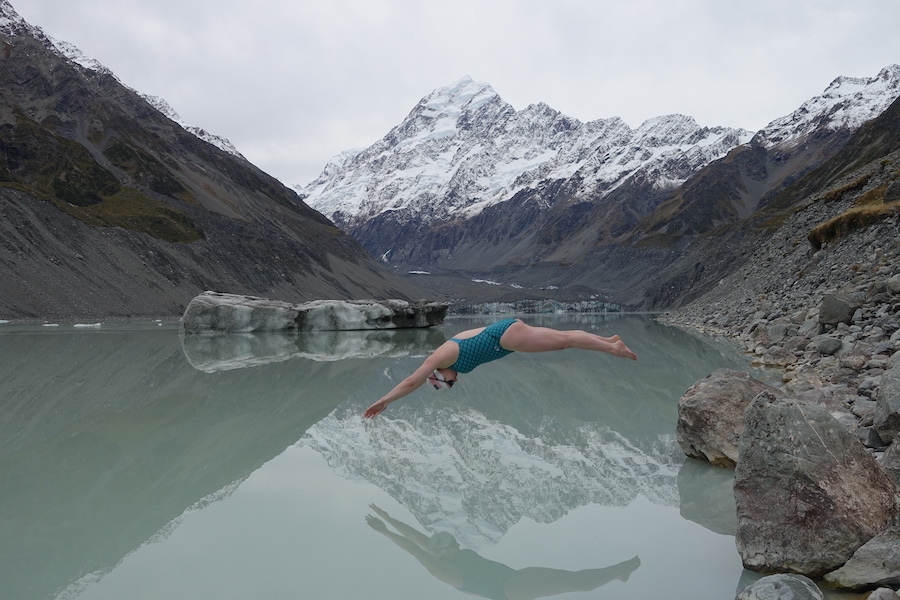 “Getting into freezing water can make your skin feel like it’s burning, but afterward, there is an immense rush of well-being,” says Monahan. “It’s almost addicting. I love water in all forms. The most special thing about ice swimming is the opportunity to swim among icebergs, glaciers and formations that are thousands of years old.”