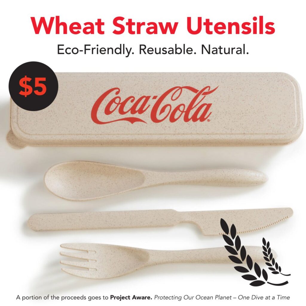 Package includes; eco-friendly, reusable wheat straw utensils (a portion of the proceeds goes to Project Aware. Wheat straw is a new and innovative bio-plastic that can be used as an eco-friendly alternative to petroleum based plastics. Wheat straw fibre is food safe certified, BPA free and FDA approved meaning it can be used in a range of applications.