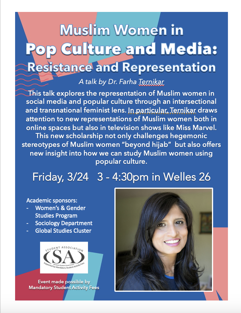 Dr. Farha Ternikar of LeMoyne College Friday 3/24, 3-4:30pm in Welles 26