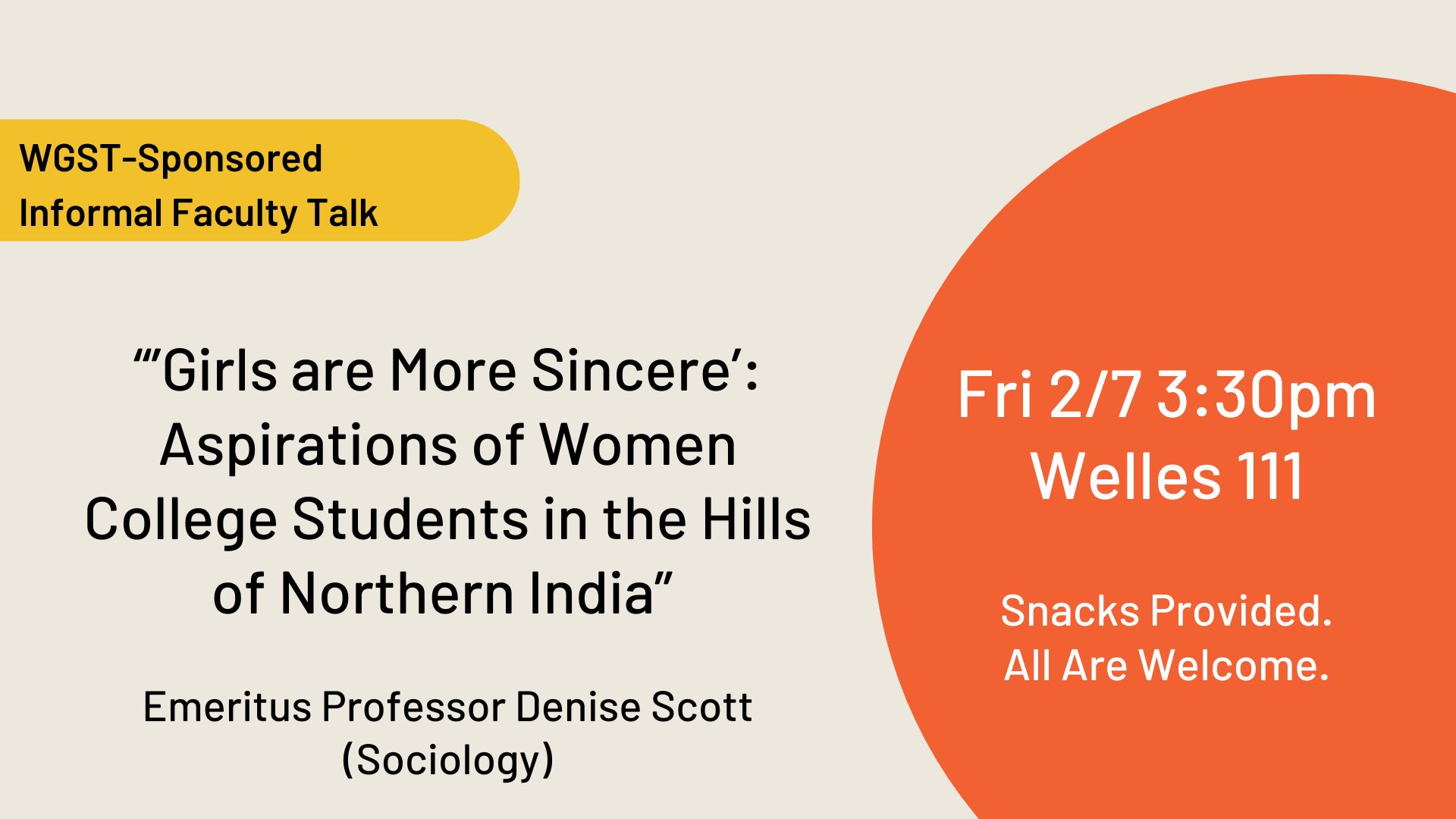 Thurs 3/30 Welles 111 1:30-2:30pm
